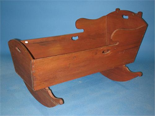 WALNUT CHILD'S CRADLE. Dovetailed construction. Has been refinished. 22.5" H, 39" L, 19" W