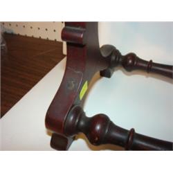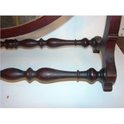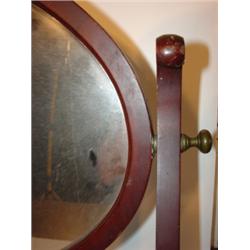 WALNUT OVAL SHAVING MIRROR. Double stretcher base. Base: 23.25" W, 7.5" D. Mirror: 21.25" x 15.5"