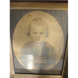 WALNUT SHADOW BOX PICTURE FRAME with early photograph of child. Loss to gilt paint around picture. 10.5" x 12.25" frame