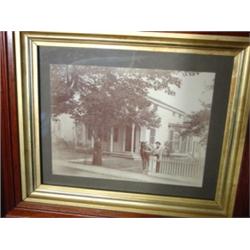 WALNUT SHADOWBOX PICTURE FRAME with Victorian era photograph of women. 14.5" x 12.5"