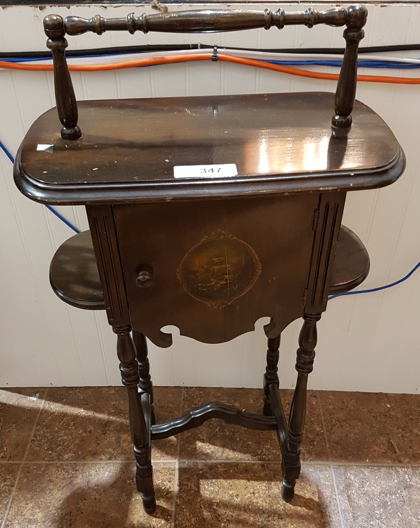 WALNUT SMOKING STAND W/SHIP MOTIF