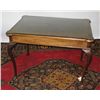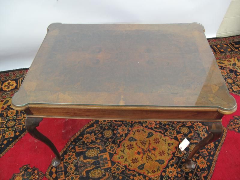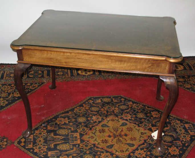 - on slender cabriole legs and with glass preserve top. 28 x 38 x 24 in.