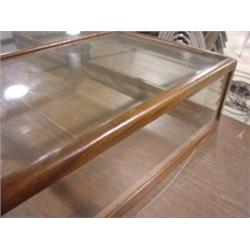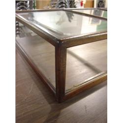 WALNUT TABLE TOP DISPLAY CASE. Has two drop down mirrored doors in back. 9" H, 51" W, 27" D