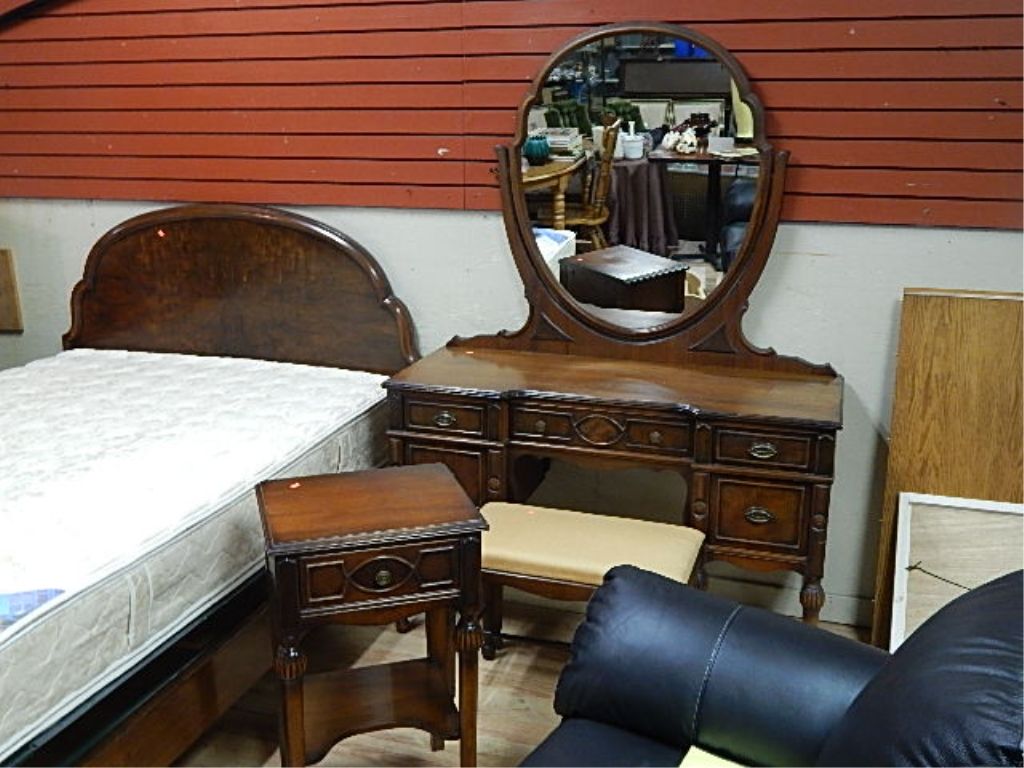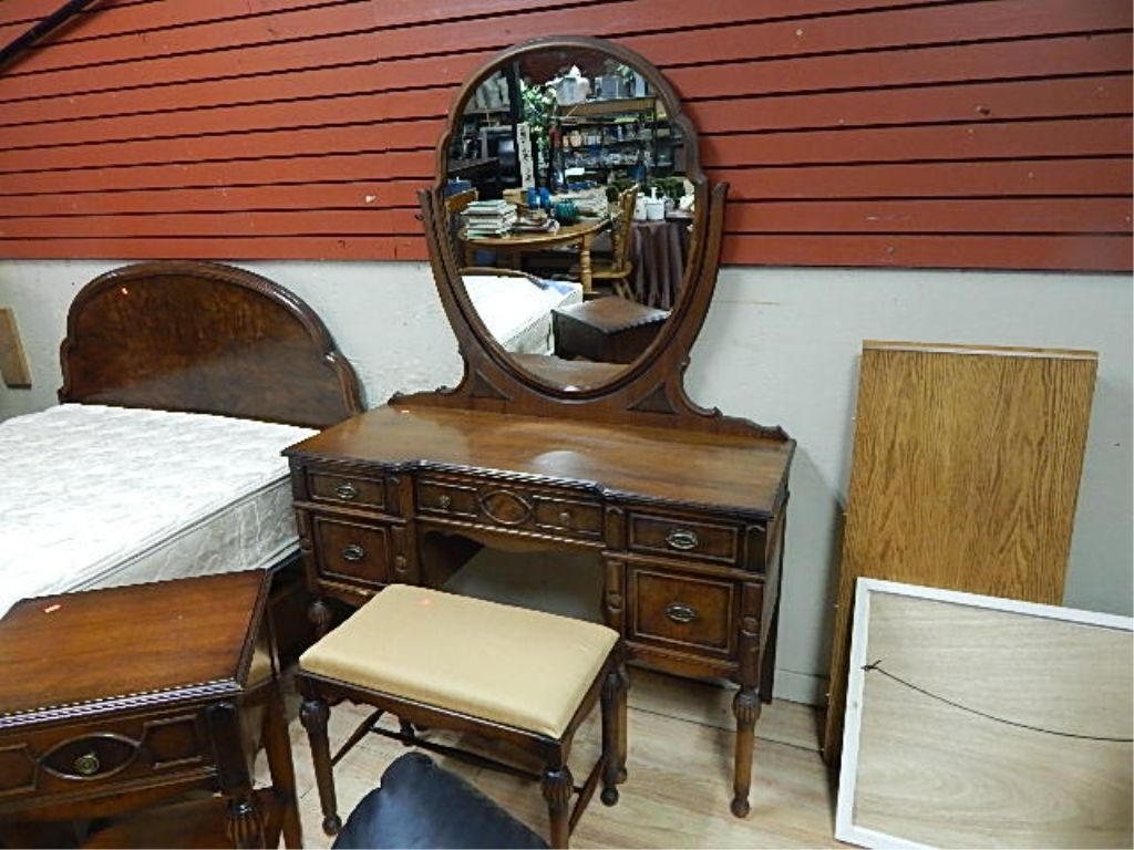 WALNUT VANITY WITH SHEILD MIRROR - 5 DRAWER AND STOOL - Craftmanship period furniture by Hespler - 1920's