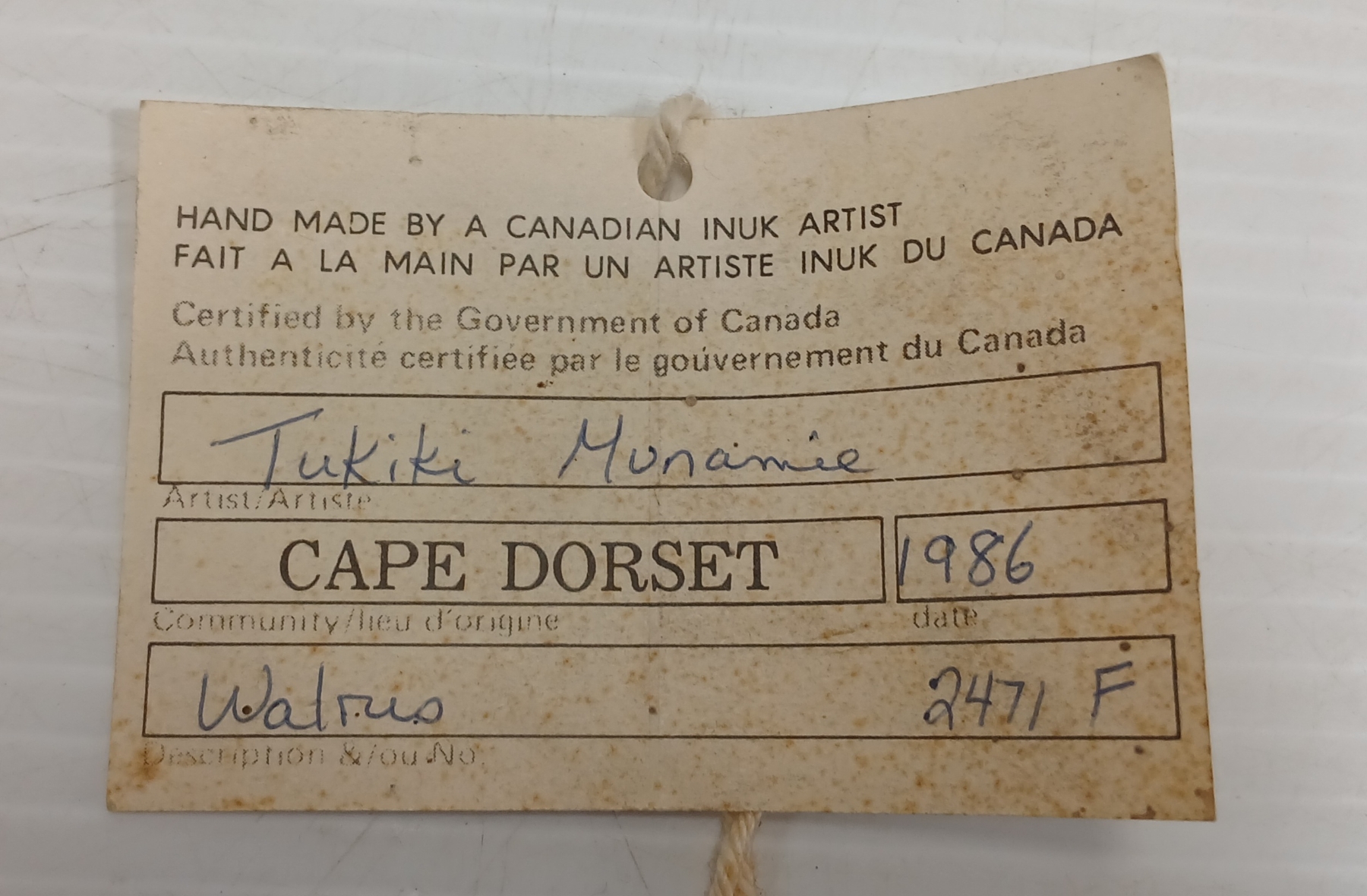 NOTE: 3 X 3.5 X 4IN - MADE IN CAPE DORSET - CIRCA 1986