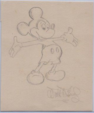 A Walt Disney signed drawing of Mickey Mouse in pencil. Supplied with coa.