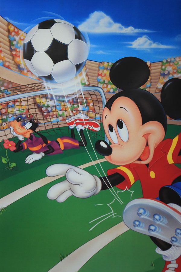 WALT DISNEY MICKEY MOUSE SOCCER **|**|** 22X28INCHES; UNFRAMED; Mickey Mouse is an animal cartoon character who has become an icon for The Walt Disney Company. He was created in 1928 by Ub Iwerks and voiced by Walt Disney. The Walt Disney Company celebrates his birth as November 18, 1928 upon the release of Steamboat Willie. The anthropomorphic mouse has evolved from being simply a character in animated cartoons and comic strips to become one of the most recognizable symbols in the world.IF YOU HAVE ANY QUESTIONS PLEASE FEEL FREE TO CONTACT US ; MSRP: $1200