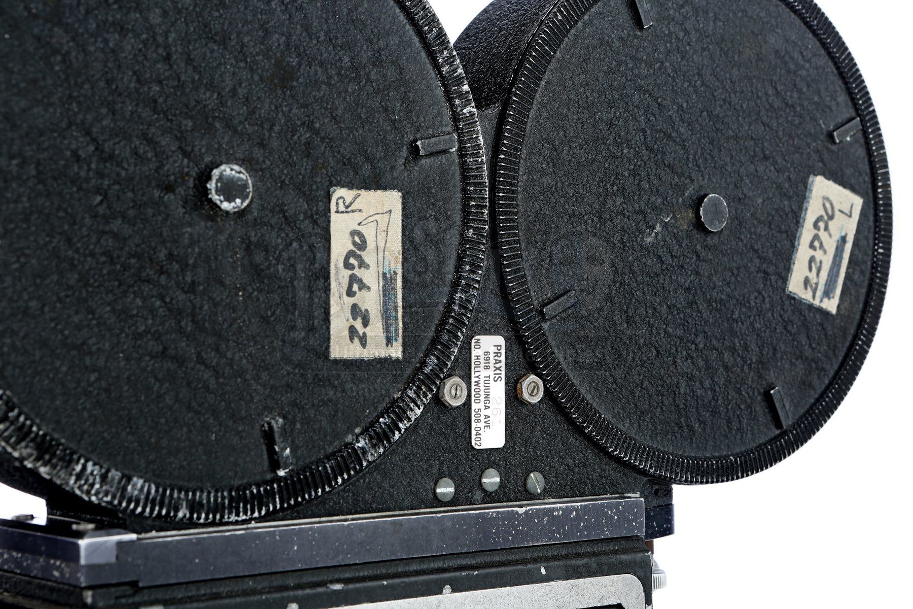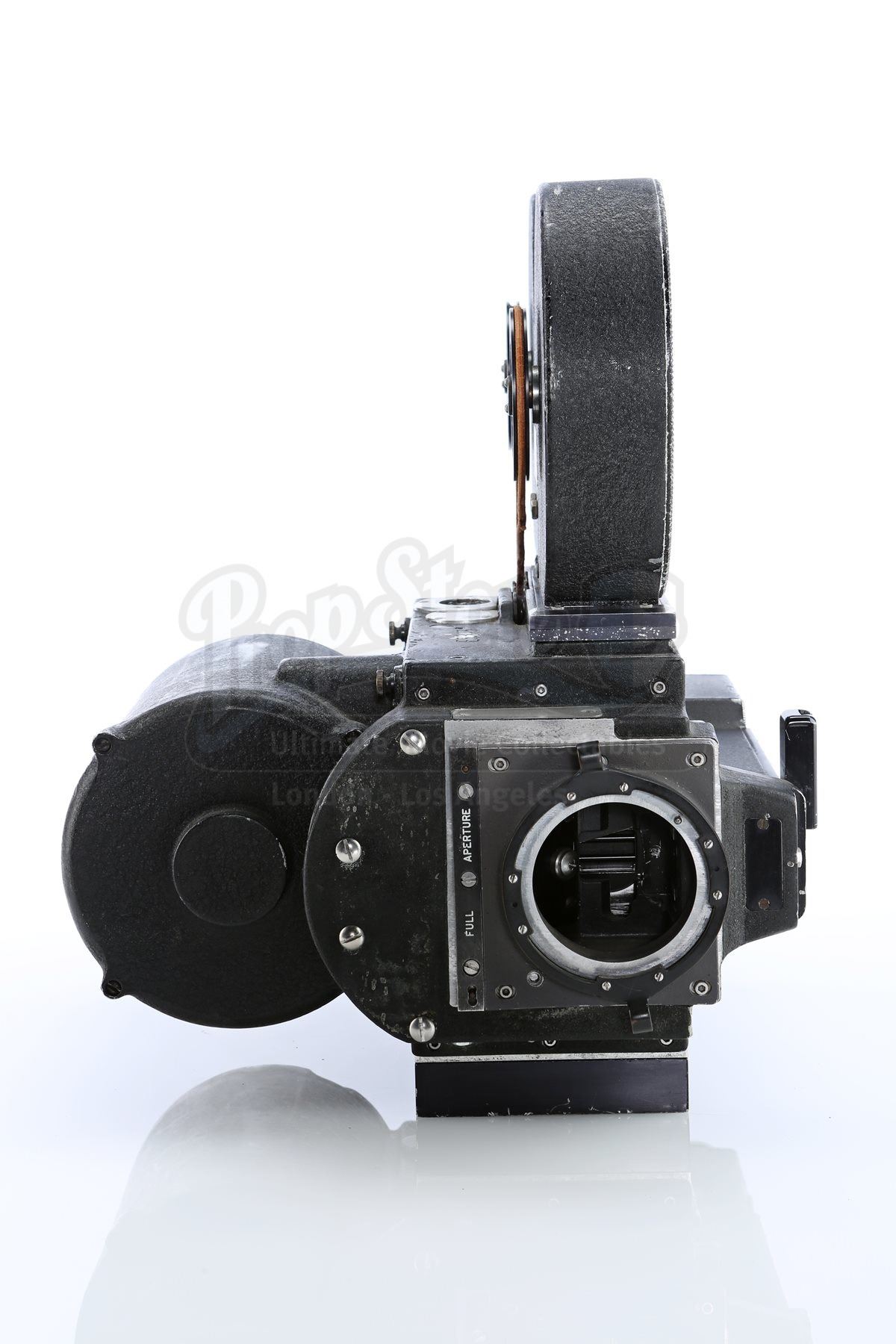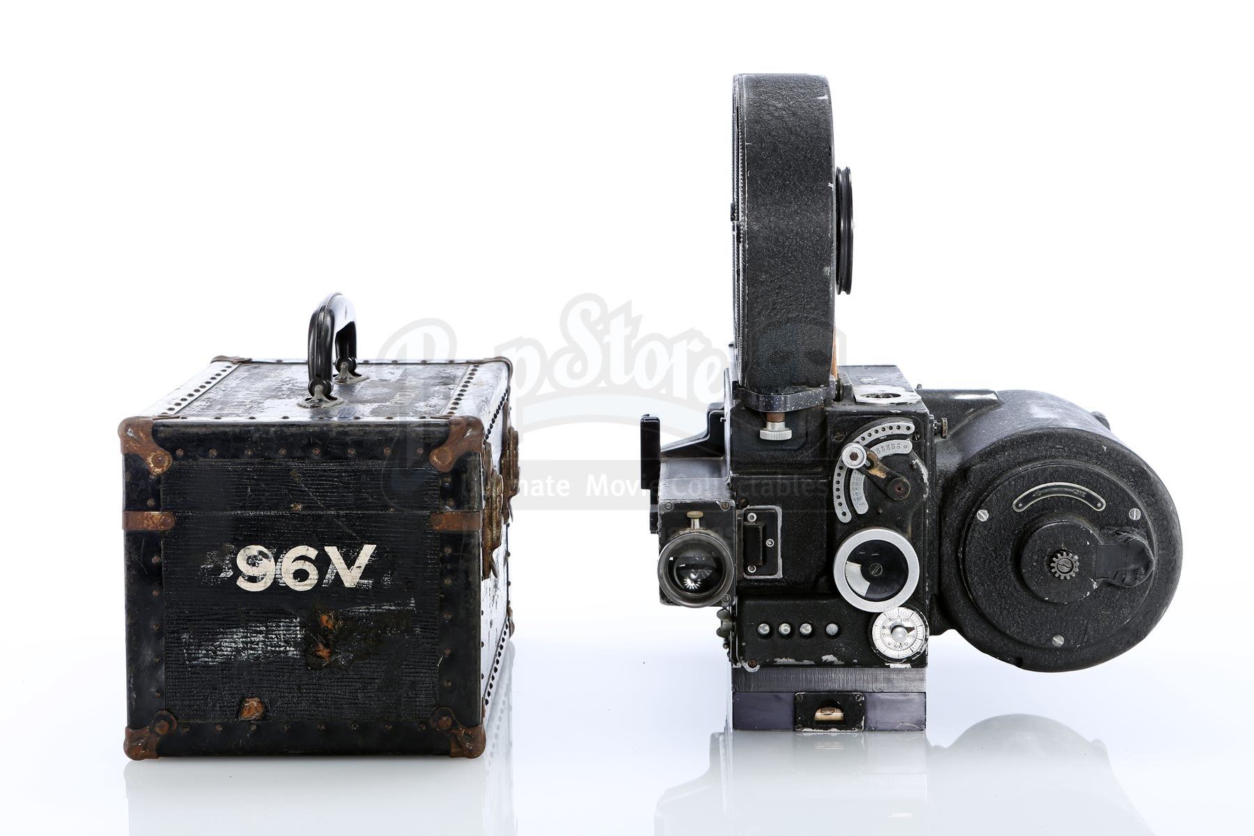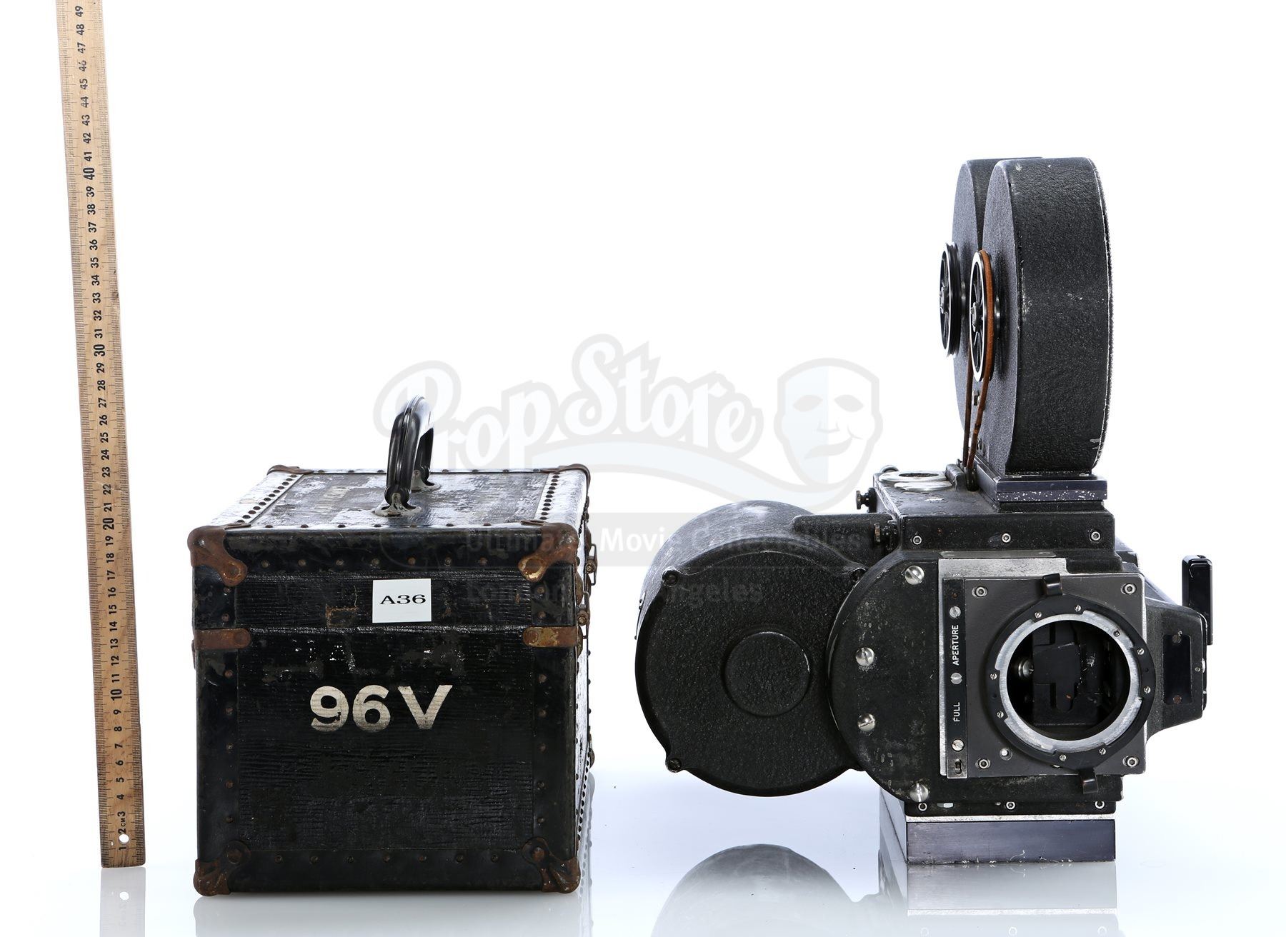 This vintage Mitchell NC camera, serial number 240, includes a 400’ Mitchell film magazine and a Mitchell motor. The motor is paired with its original carrying case, marked for the Walt Disney camera department. The camera was later modified for visual effects usage with an updated lens mount. It is no longer on its rack-over base, is untested condition, shows wear to the outer finish from use and is in fair overall condition. Dimensions (camera assembled): 38 cm x 33 cm x 43 cm (15” x 13” x 17”); (motor case): 32 cm x 21.5 cm x 21.5 cm (12 ½” x 8 ½” x 8 ½”)
