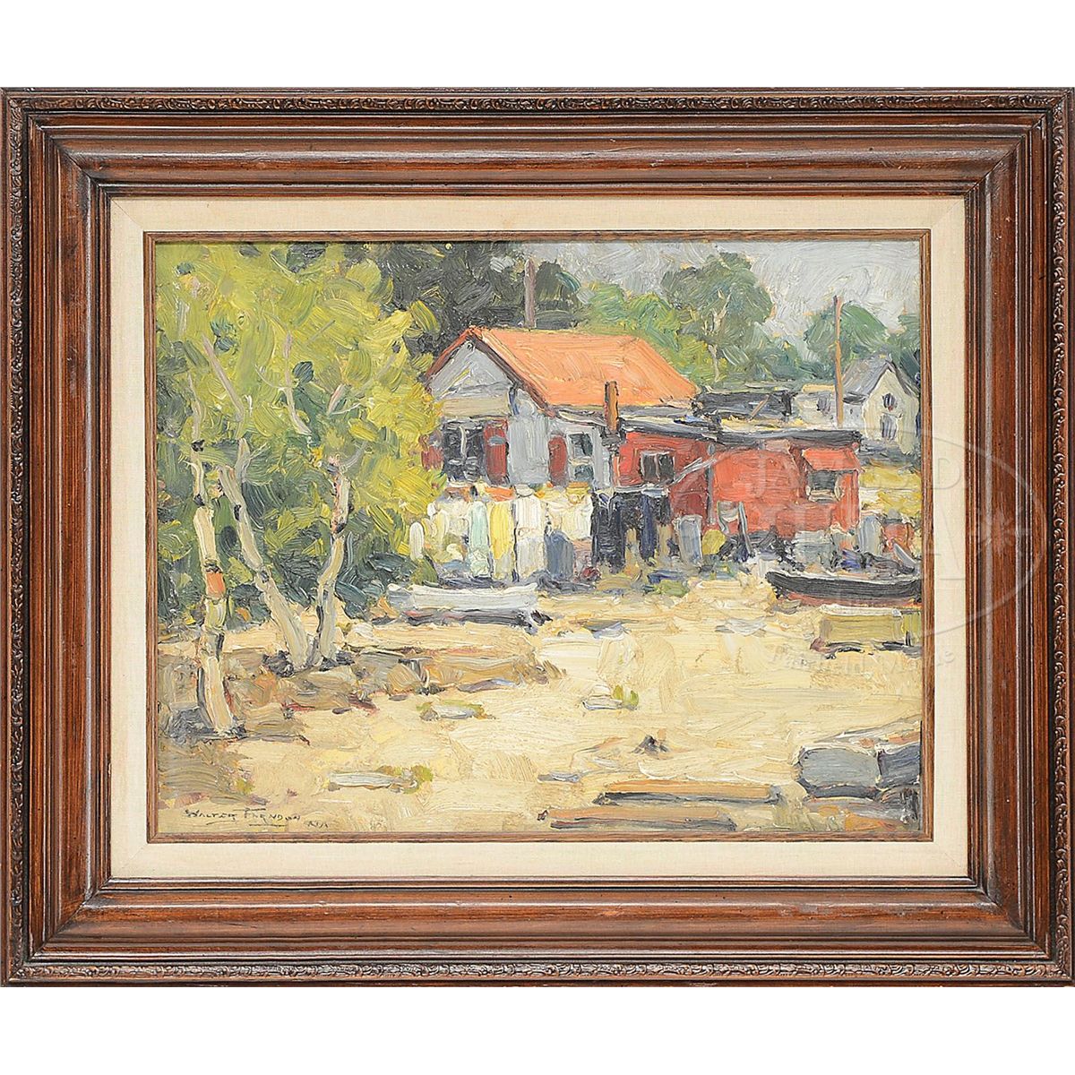 WALTER FARNDON (American, 1867-1964) LANDSCAPE WITH HOUSE AND BOATS