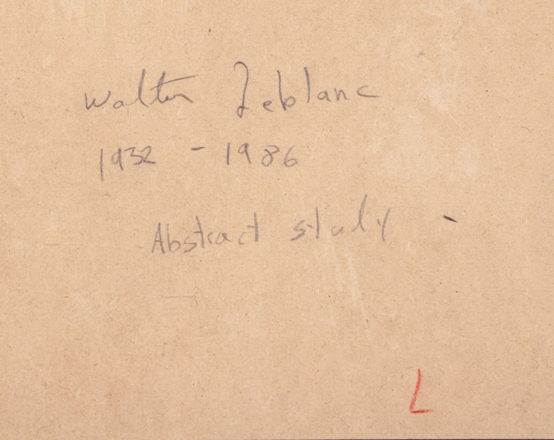 Oil on board. Featuring abstract composition and framed. Signed and attr. Walter Leblanc (Belgian, 1932-1986); 10 by 10 in. (25.4 x 25.4 cm). Closely associated with the Zero Group in Dusseldorf, Walter LeBlanc is best known for his Kinetic and Op Art pieces that incorporate light and other non-traditional materials. In 1959, investigating strategies for painting without pigment, LeBlanc introduced torsion to his workâhe tightened and twisted cotton threads, and eventually plastic ribbons, over traditional supports to create ray-like patterns and simple geometric shapes. LeBlanc was primarily interested in motion, both the illusion of movement produced by Op Art and the physical movement of Kinetic Art (https://www.artsy.net/artist/walter-leblanc). PROVENANCE: Private collection (Toronto, ON)