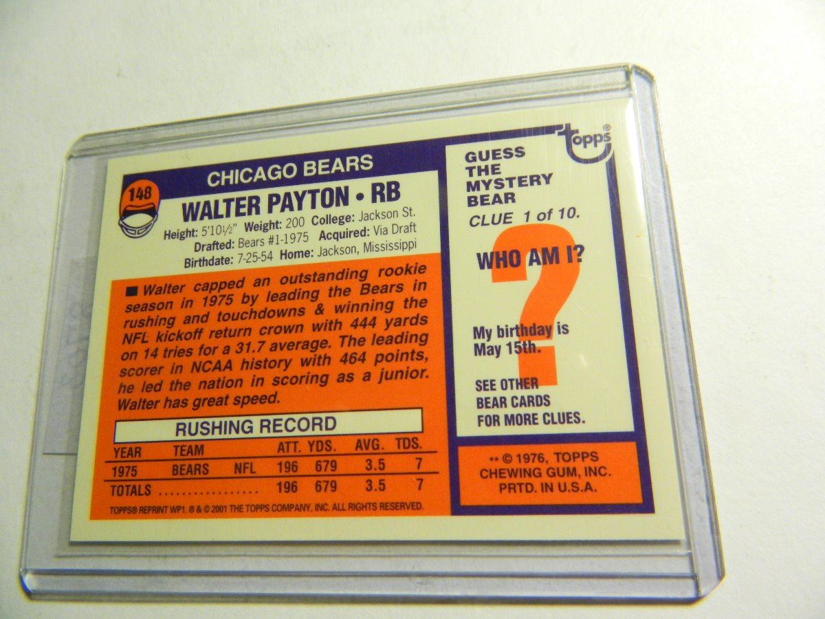 WALTER PAYTON 2001 Topps Reprint #WP1 Bears (1976 Topps Rookie)