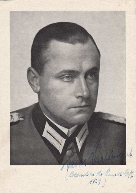 (1894 - 1976) German officer, Senior Operations Staff Officer to Keitel, a member of Hitler's inner circle, tried at Nuremberg. S.P. 4" x 6" b/w, a paperstock photo signed with his 1939 rank, with additional ranks and years of promotion penned on verso. Very good.