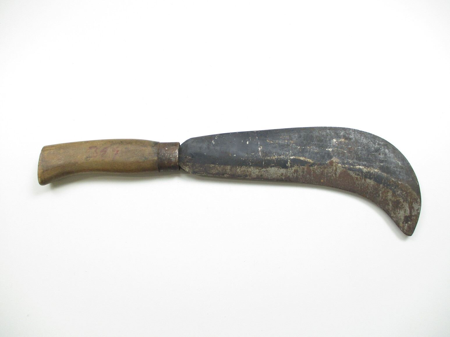 WALTERS BILL HOOK. (1) METAL WITH WOOD HANDLE (WOOD IS CRACKED), BLADE MARKED: "WALTERS", NO OTHER MARKINGS, BLADE APPROX.10.75" & OAL APPROX. 17".