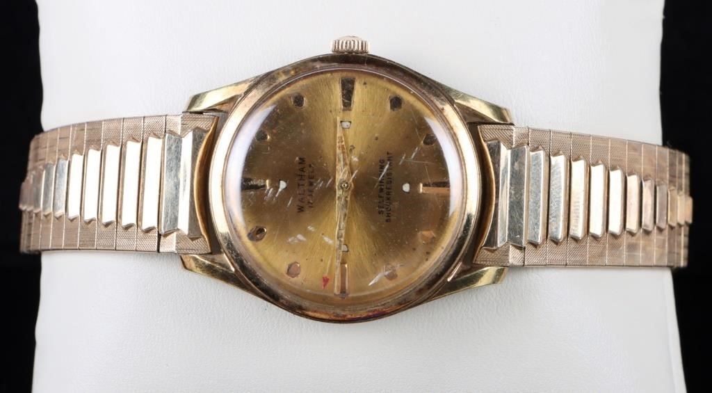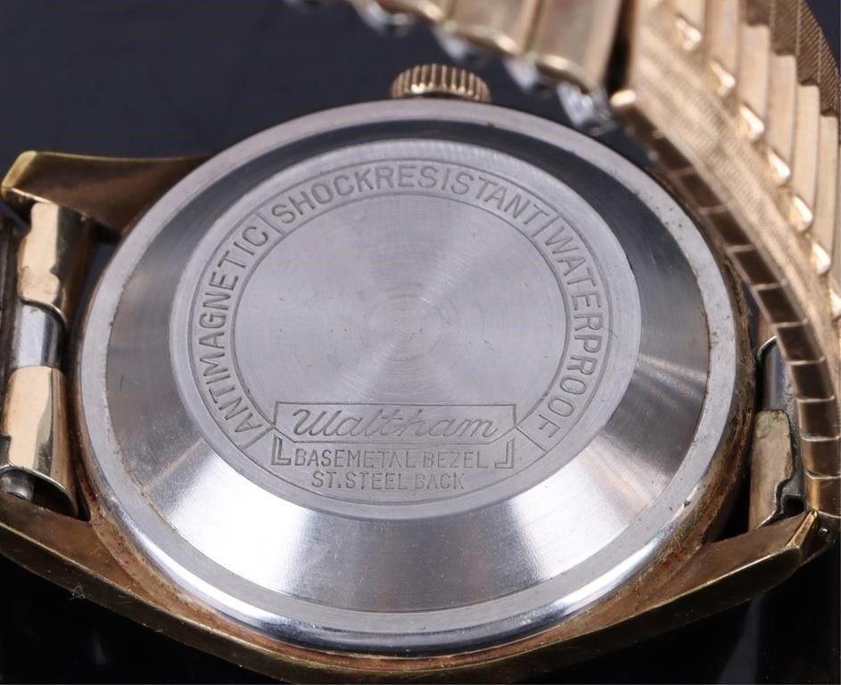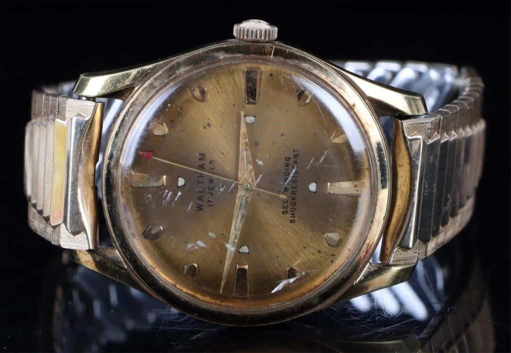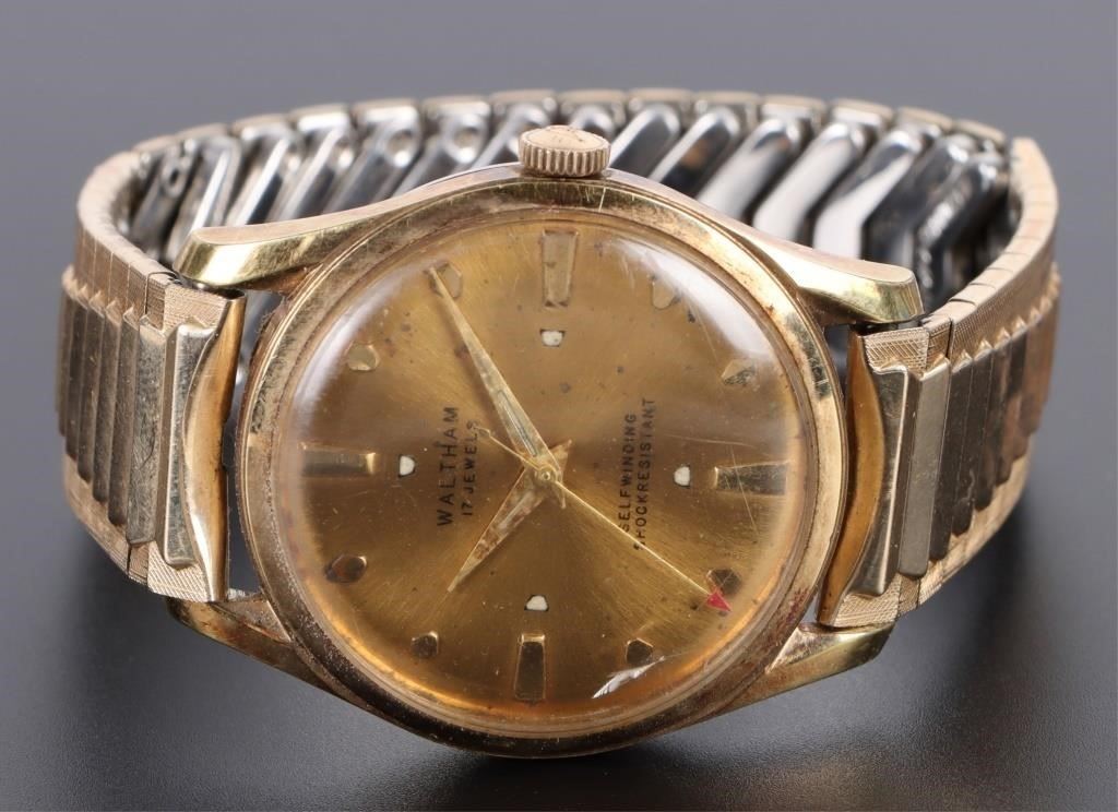 Waltham gold tone 17 jewel self winding men's wristwatch.