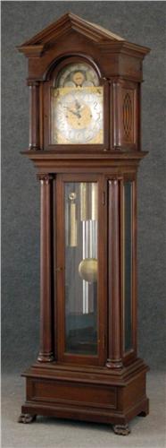 WALTHAM GRANDFATHER CLOCK with 5 tube chiming strike and moonphase, 94 1/2"x26"x17" circa 1910 <BR>condition: excellent