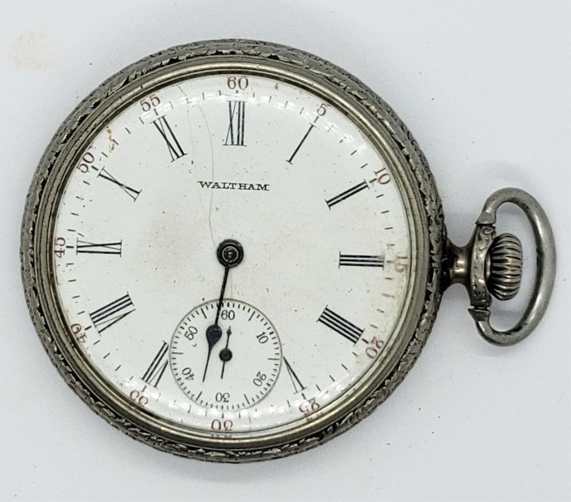 SERIAL #19405610, 15 JEWEL, SIZE 16, GRADE 620 - NOT RUNNING MISSING HOUR HAND & SMALL CRACK IN FACEW