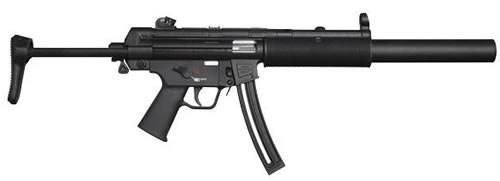 FAMILY:MP5 Series MODEL:H&K MP5 SD TYPE:Rifle ACTION:Semi-Auto FINISH:Matte CALIBER/GAUGE:22 LR CAPACITY:25+1 BARREL:16.1" OVERALL LENGTH:26.8" Collapsed/33.8" Extended RATE-OF-TWIST:1-in-13.75"