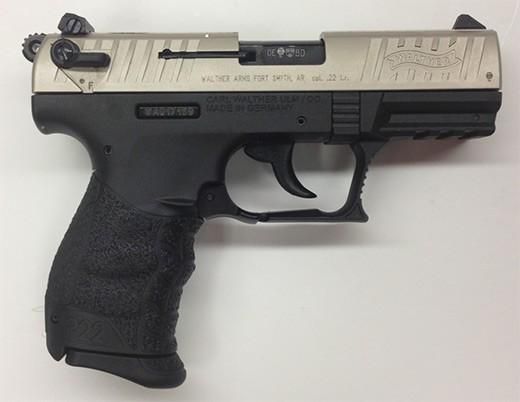 FAMILY:P22 Series MODEL:P22 TYPE:Semi-Auto Pistol ACTION:Double / Single Action FINISH:Nickel STOCK/FRAME:Polymer Frame STOCK/GRIPS:Black Polymer SPC FEATURE:Threaded Barrel Model CALIBER/GAUGE:22 LR CAPACITY:10+1 # OF MAGS:1 MAGAZINE DESC:10 rd. BARREL:3.42" OVERALL LENGTH:6.3" SIGHTS:Adjustable Rear & Front Sights SAFETY:2 Position Slide Mount ADDL INFO:Cross-Direction Textured Grip ADDL INFO:Front & Rear Slide Serrations ADDL INFO:Interchangeable Backstraps