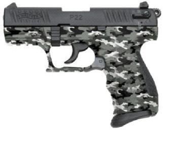 WA5120318 PRODUCT DETAILS FAMILY:P22 Series MODEL:P22 Urban Camo TYPE:Semi-Auto Pistol ACTION:Double / Single Action FINISH:Black STOCK/FRAME:Polymer Frame STOCK/GRIPS:Urban Camo SPC FEATURE:Threaded Barrel Model CALIBER/GAUGE:22 LR CAPACITY:10+1 # OF MAGS:1 MAGAZINE DESC:10 rd. BARREL:3.42" OVERALL LENGTH:6.3" SIGHTS:Adjustable Rear & Front Sights SAFETY:2 Position Slide Mount ADDL INFO:Cross-Direction Textured Grip ADDL INFO:Front & Rear Slide Serrations ADDL INFO:Interchangeable Backstraps EXCLUSIVE:TALO EXCLUSIVE