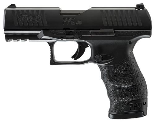 FAMILY:PPQ Series MODEL:PPQM2 TYPE:Semi-Auto Pistol ACTION:Semi-Auto FINISH:Black STOCK/FRAME:Polymer Frame STOCK/GRIPS:Black Polymer WEIGHT:28 oz. CALIBER/GAUGE:45 ACP CAPACITY:12+1 # OF MAGS:2 MAGAZINE DESC:12 rd. BARREL:4.25" OVERALL LENGTH:7.4" SIGHTS:Adjustable Front & Rear Sights ADDL INFO:100% Pre-Cocked Striker ADDL INFO:Cross-Direction Textured Grip ADDL INFO:Front & Rear Slide Serrations Walther, PPQ M2, Semi-automatic Pistol, Full Size, 45 ACP, 4" Barrel, Polymer Frame, Black Finish, Fixed Sights, 12Rd, 2 Magazines Product Specifications UPC Code: 723364209352 Manufacturer: Walther Model: PPQ M2 Action: Semi-automatic Type: Striker Fired Size: Full Caliber: 45 ACP Barrel Length: 4" Frame/Material: Polymer Finish/Color: Black Capacity: 12Rd Accessories: 2 Mags Sights: Fixed Sights Manufacturer Part #: 2807076