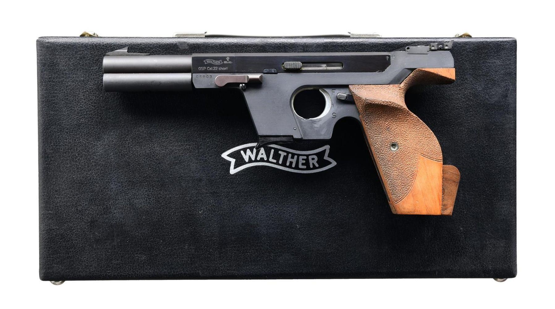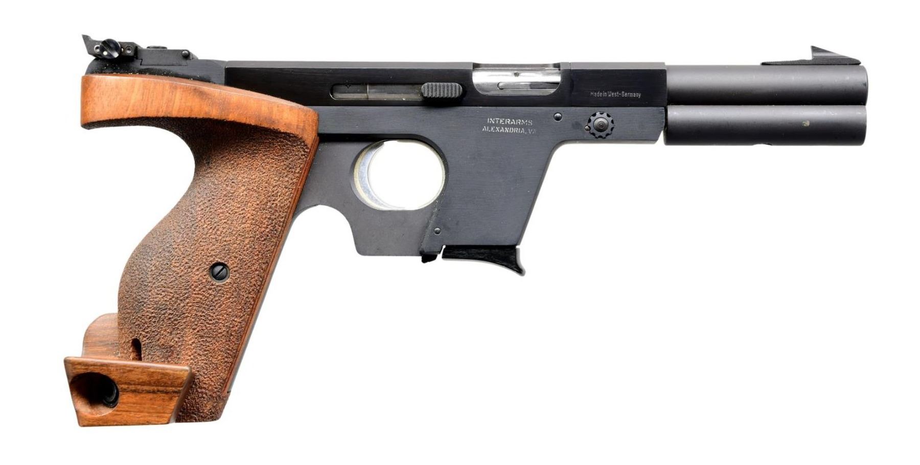 Cal. 22 Short. S# 05903. Bbl. 4 3/4". Blade front sight. Adjustable rear sight. Right side of frame has Interarms import marking. Fitted textured grips. MAGS: 1-10 rd. UNATTACHED ACCESSORIES: factory case w/ manual & cleaning rod. CONDITION: metal & grips show light handling wear. Bright near excellent bore. (24-1739/MJC). MODERN. $700-1000.