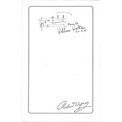 (1902 - 1983) English composer. Fine A.M.Q.S. penned on a sheet of stationery bearing a facsimile of Richard Wagner's signature at bottom, 1p. 8vo., [n.p.], Apr. 22, 1977, one measure from his 1923 work Façade, his setting of poems by Dame Edith Sitwell. Boldly written, mounting traces to verso, otherwise very good, ideal for display.