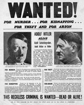 WANTED POSTER World War2 WWII Nazi Germany ADOLF HITLER, 8.5in X 11in Glossy Card Stock Reproduction of the 1939 British Poster