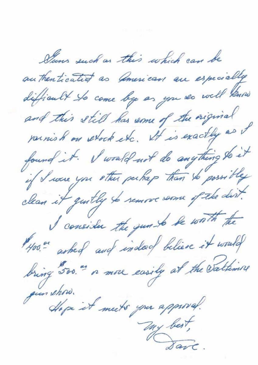Not every item included in this auction has been completely disassembled to verify internal component's origins. However, if we have made the statement that the item is "all matching" or "internal numbers match", we guarantee that this information is accurate. If an item's description does not list the status of the internal components we do not guarantee that they are original, matching or that they are period. If you would like additional information concerning internal components of a firearm that does not mention the internal components in the description, please contact us at 207-453-2114 and our consultants will be happy to assist you at their earliest availability.