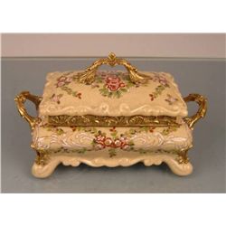 FINE PORCELAIN LIDDED BOX W/ BRASS ACCENTS178F - FINE PORCELAIN LIDDED BOX W/ BRASS ACCENTS