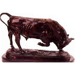 "Bull Head Down" Bronze Sculpture - Bonheur180G - "Bull Head Down" Bronze Sculpture - Bonheur