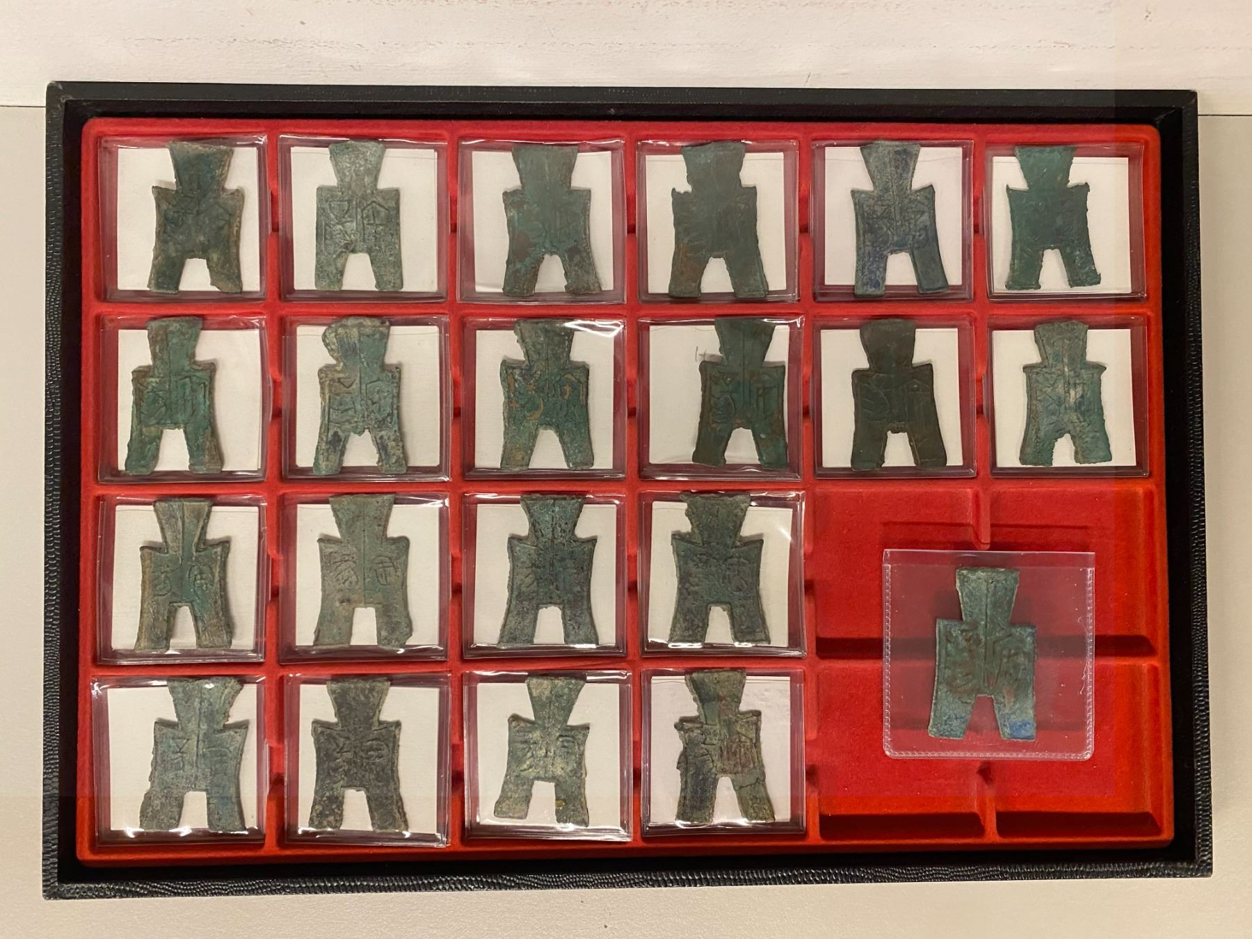 WARRING STATES: State of Zhao, 350-250 BC, LOT of 21 AE spade money, all different varieties of the An Yang square foot spade, including 13 with an angular calligraphy (H-3.182 or similar) and 8 with a rounded style (H-3.186 or similar); average Fine to VF conditions, some quite bold, two with small casting holes, one pierced and repaired, another broken and repaired; retail value $650, lot of 21 pieces, ex Dr. Dirk Löer Collection, ex Bernd Löer Collection.