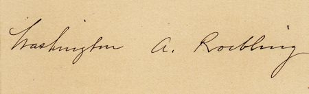 (1837 - 1926) American civil engineer and the builder of the world's first suspension bridge, the Brooklyn Bridge. Bold signature on a card. Fine.