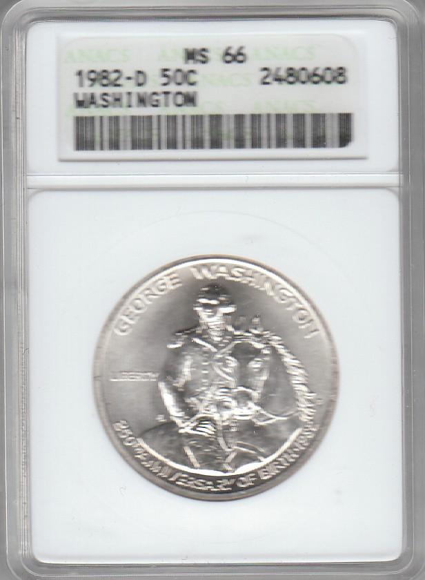 WASHINGTON HALF 1982D ANACS MS 66 SILVER 50 CENT