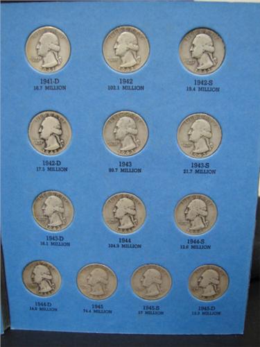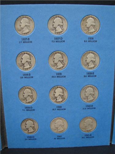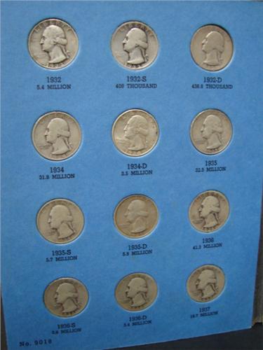 WASHINGTON HEAD QUARTER ALBUM. 1932-1945. Complete. 37 coins. Includes 1932-S VG, 1932-D Good.