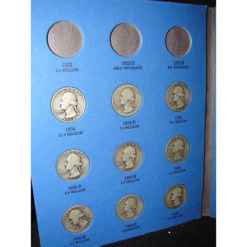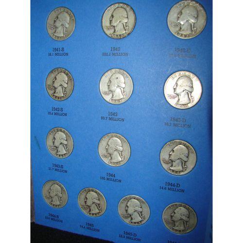 ALBUM OF WASHINGTON QUARTERS. 1932 to 1945. Missing 1932, 1932-D, 1932-S, 1937-S, & 1939-S.