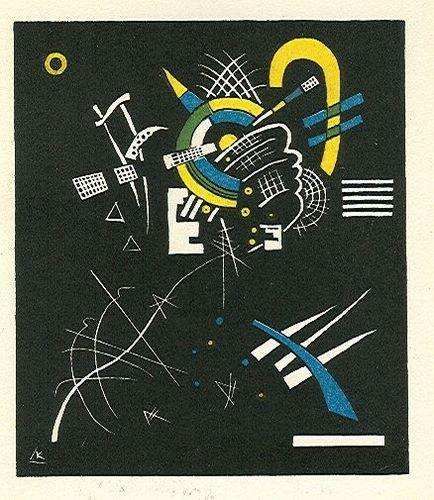 WASSILY KANDINSKY ANTIQUE LITHOGRAPH "KLEINE WELTEN VII" PRINTED IN PARIS IN 1954 BY MOURLOT AND PUBLISHED BY BERGGRUEN FOR THEIR BEAUTIFULLY-EXECUTED CATALOGUE. IMAGE SIZE: 4 1/2 X 4 INCHES (117 X 100MM - PROFESSIONALLY FRAMED & MATTED - -