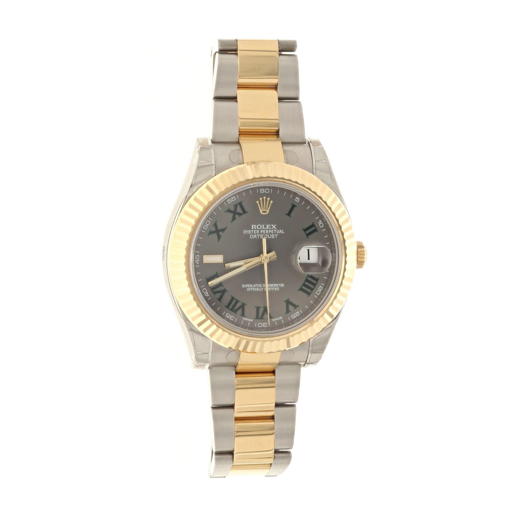 WATCH: [1] Man's S/Steel & 18KYG Rolex Oyster Perpetual DateJust II watch, slate dial, roman numerals, fluted bezel, 41.0mm case, model #116333, serial #537S3753, movement #3136, movement ID #30J88615, Oyster bracelet #72213A.
