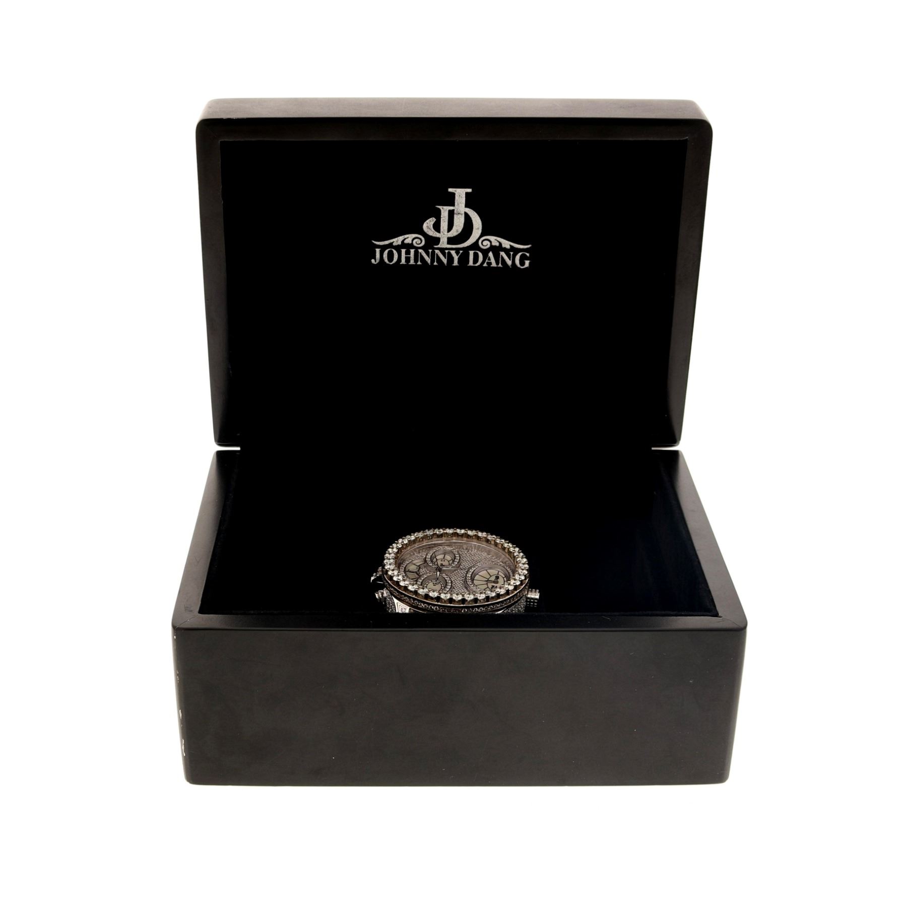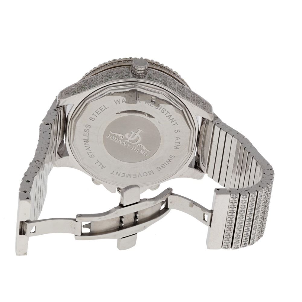 WATCH: [1] Stainless steel Johnny Dang Evolution watch set with diamonds in dial, case, lugs, case and band, approx. 16.40 carats total weight, H-J color, SI1-I1 clarity; (no numbers on case); includes presentation box