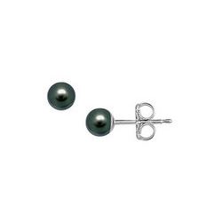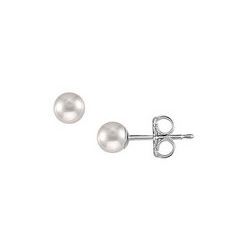 A pair of round freshwater cultured pearl stud earrings with a size of 5 mm is made in 14K white gold. These pearl studs are available in either scr