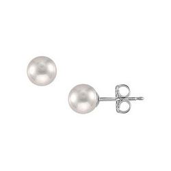 Akoya Cultured Pearl Stud Earrings : 14K White Gold – 6 MM