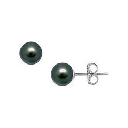 A pair of round freshwater cultured pearl stud earrings with a size of 8 mm is made in 14K white gold. These pearl studs are available in either scr