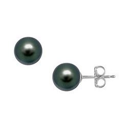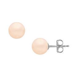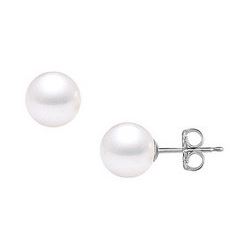 A pair of round akoya pearl stud earrings with a size of 9 mm is made in 14K white gold. These pearl studs are available in either screw-back or pus