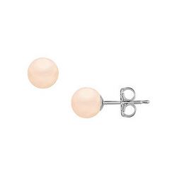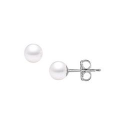 A pair of round akoya pearl stud earrings with a size of 6 mm is made in 14K white gold. These pearl studs are available in either screw-back or pus