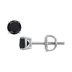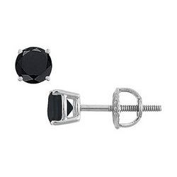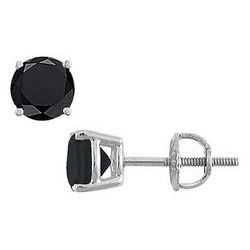 14K White Gold : Round Black Diamond Stud Earrings – 1.50 CT. TW.