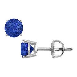 14K White Gold : Prong Set Blue Sapphire Stud Earrings 1.50 CT TGW