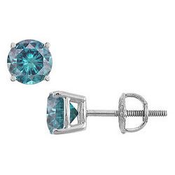 Blue Diamond Stud Earrings : 14K White Gold – 2.00 CT Diamonds