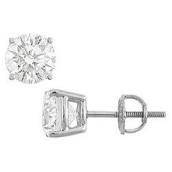 14K White Gold : Round Diamond Stud Earrings – 2.00 CT. TW.