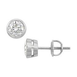 14K White Gold : Bezel-Set Round Diamond Stud Earrings – 1.00 CT. TW.