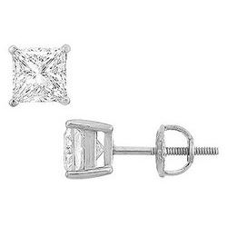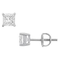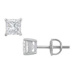 14K White Gold : Princess Cut Diamond Stud Earrings – 1.00 CT. TW.