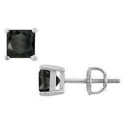 14K White Gold : Round Black Diamond Stud Earrings – 2.00 CT. TW.